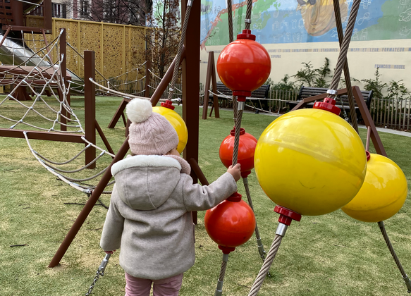 Les enfants disposent de 2 salles de jeux et d'activités dans ces grands locaux de 180m². Ils sont répartis en deux dortoirs selon leurs habitudes de sommeil. La crèche est complété par un hall d'accueil, une salle de change, une cuisine, une buanderie, une salle de pause pour les professionnels et un bureau pour recevoir les familles.